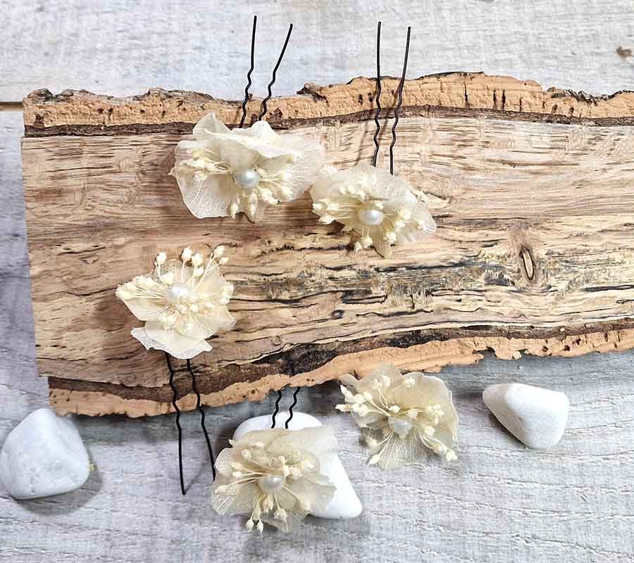 Horquillas para el día de la boda hechas a mano; tienen un aire sofisticado y son perfectas para complementar tu peinado.