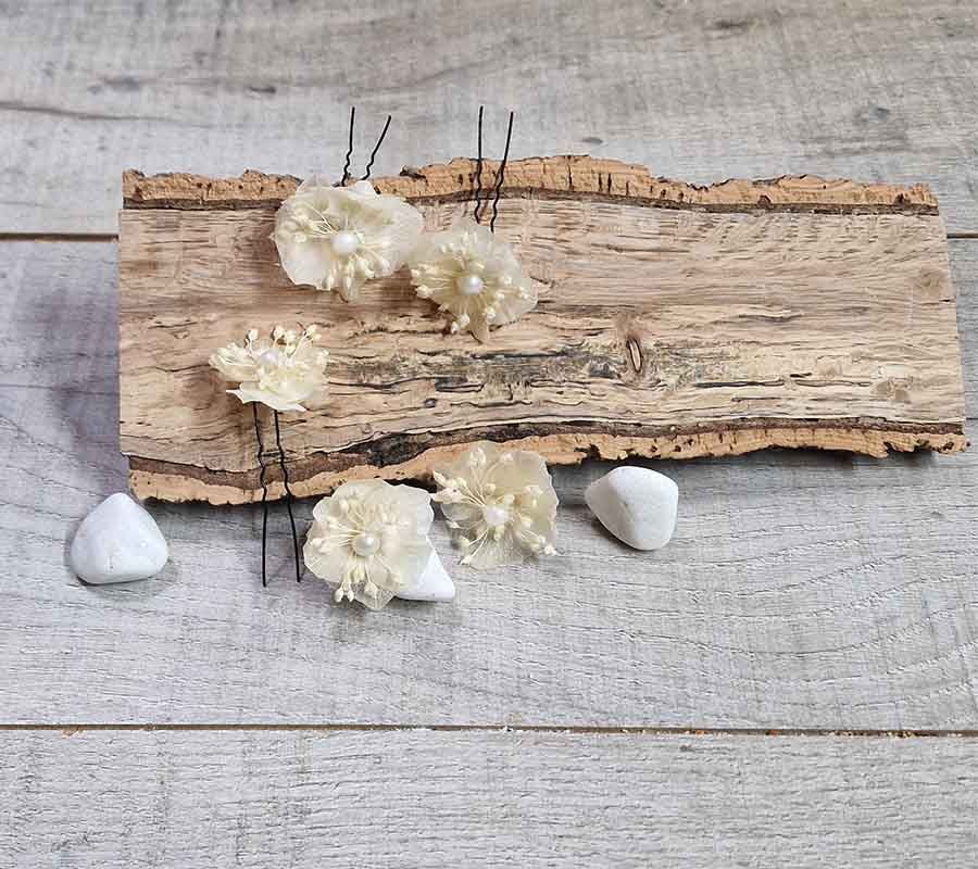 Adornos de pelo de flores preservadas