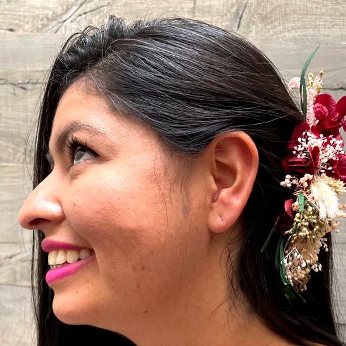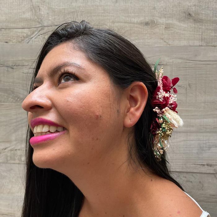 Entre paniculata, hortensia, glixia, margarita, sorgo, pampa y avena natural. Están hechos artesanalmente, tienen un aire natural, son perfectos para complementar tu peinado.