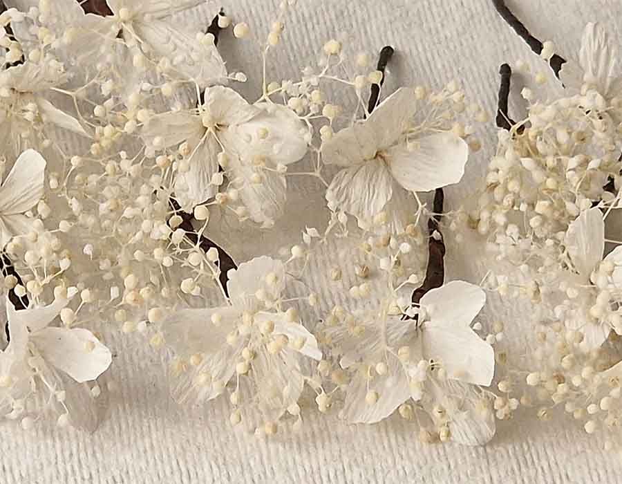 - Elaborado con: Flor de Azahar de papel y paniculata preservada