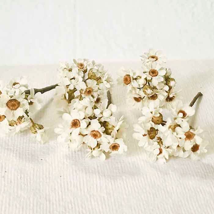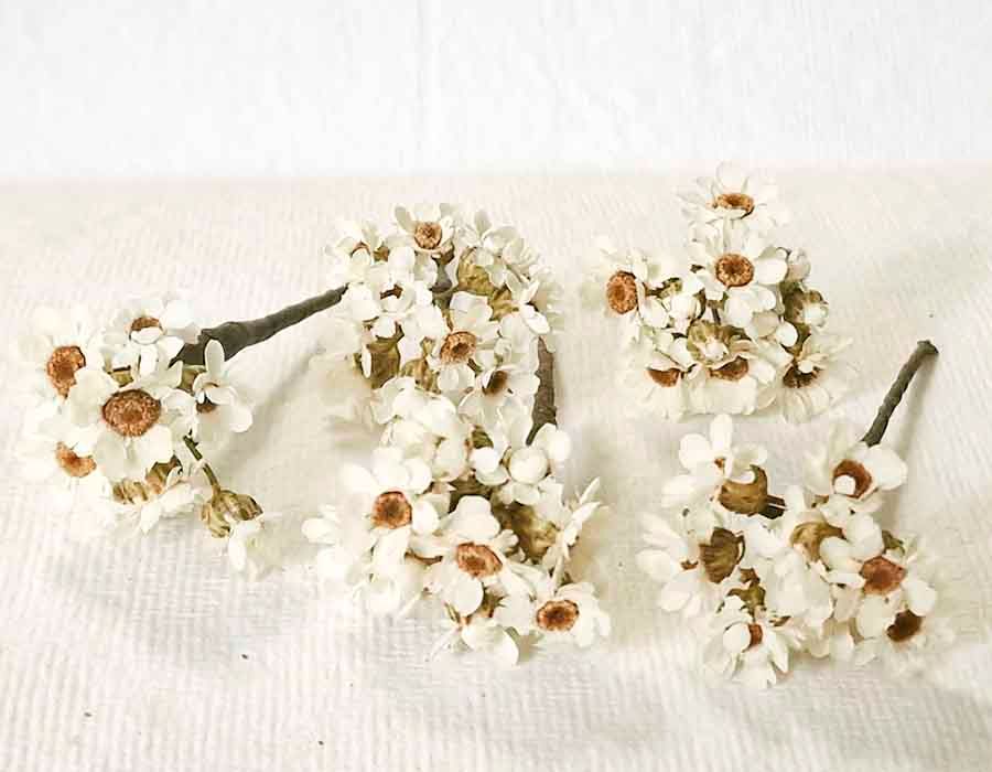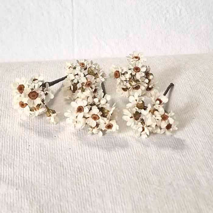 5 Pin Pelo Margarita Preservada.La sencillez y la elegancia que aporta a los peinados la flor de la margarita preservada la cual hemos reforzado con la paniculata en color blanco o blanco roto, a fin de adornar tu pelo para ir de fiestas y celebraciones muchas veces, totalmente natural para resaltar tu peinado, con un Set de cinco unidades podrás realizar un tocado perfecto o una corona, tanto para la novia, para la niña de comunión, especial para lucirlo en las fiestas más importantes de tu vida.