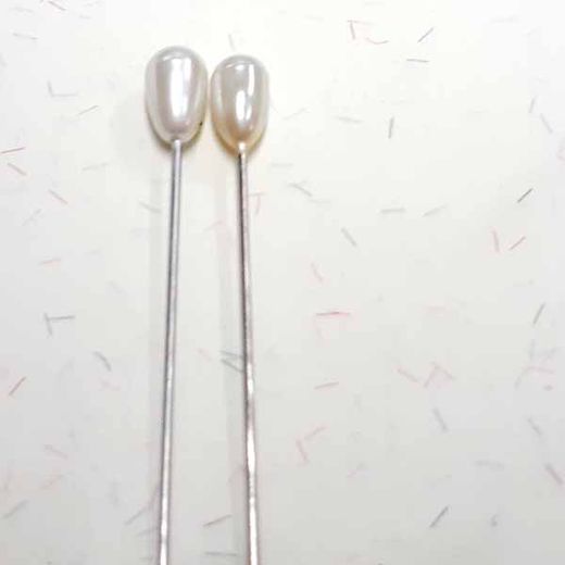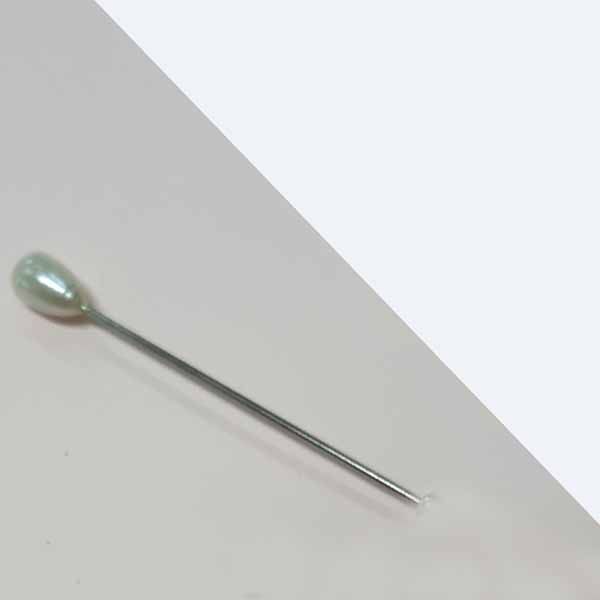 - Alfiler de acero con cabeza blanca, en forma de lágrima.