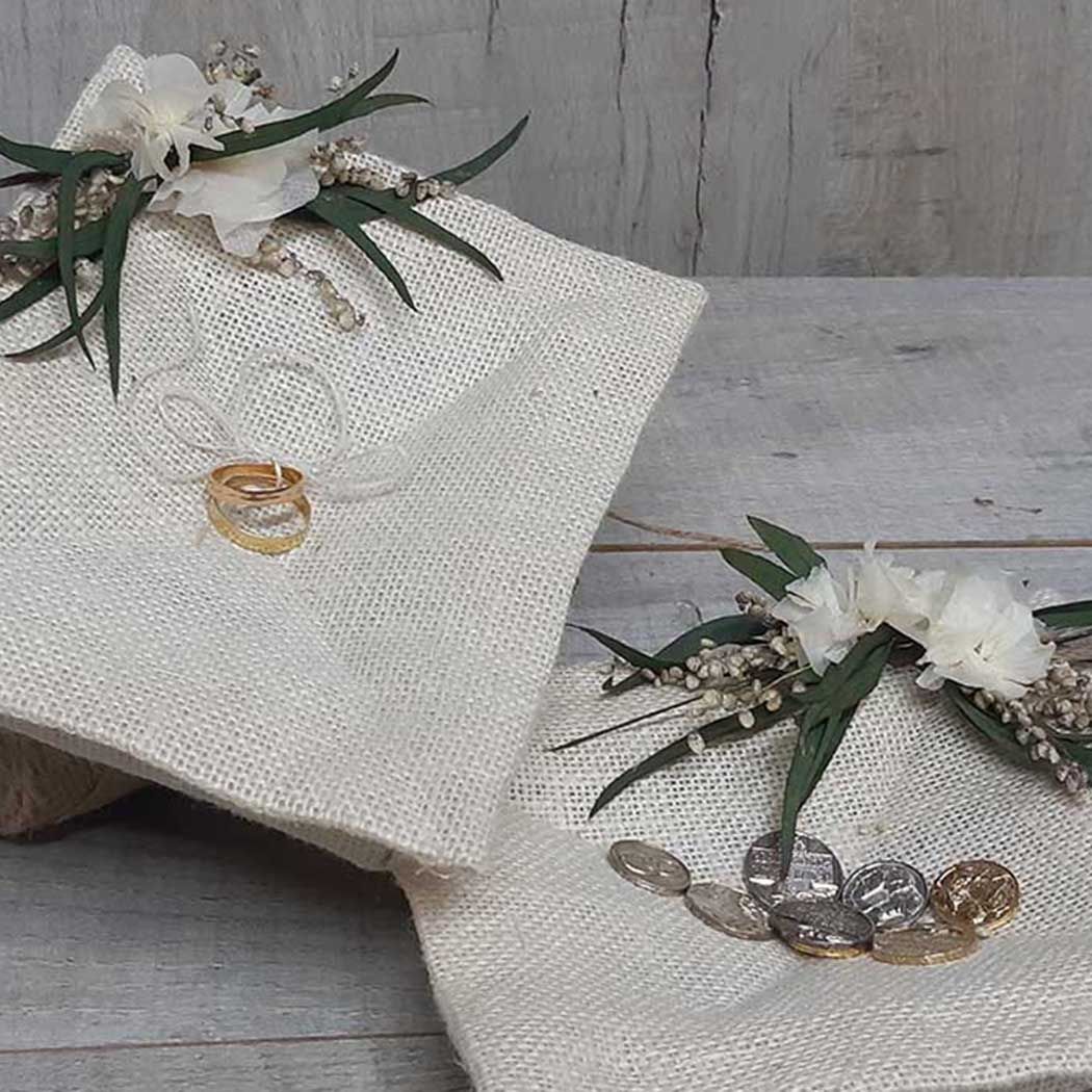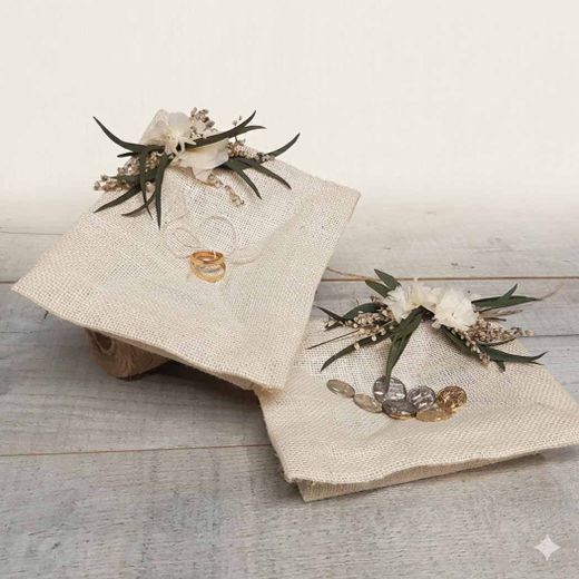 Seguridad total: Incluye una bolsita de muselina a juego para guardar las arras con mimo hasta el momento de la entrega.