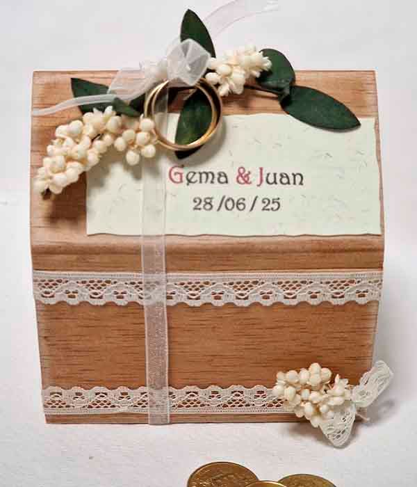 Baúl Porta Anillos y Arras. Llevar los anillos y las arras al altar forma parte de la ceremonia de tu boda, el baúl de madera en marquetería, es cómodo de llevar muy decorativo y atemporal.