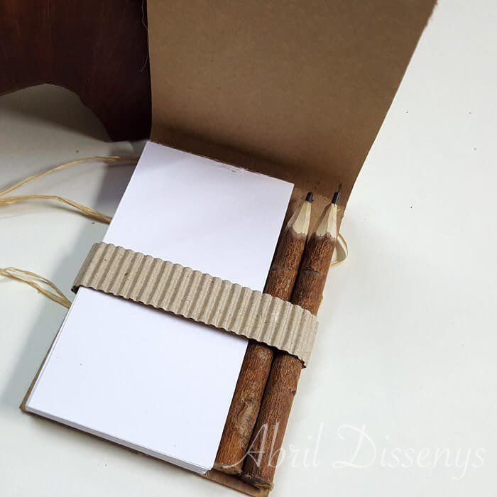 Bloc notas lápiz con flor seca arena
