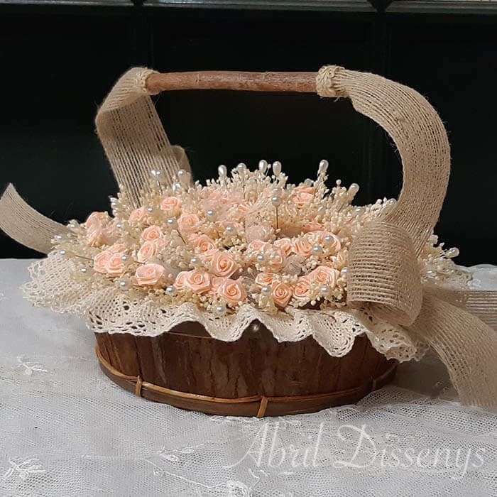 Cesta para AlfileresUna Cesta Presentación de Alfileres. Cesta para llevar los alfileres de novia. Una opción para sorprender tus invitadas regalando un alfiler de flor seca. Las cestas estan forradas y con acabados perfectos.Montaje incluido en el PrecioProducto: Cesta para los alfileresElaboración: Cesta rustica con encaje de hilo y capacidad para 80 /o 100 alfileres + consultarEstilo: Rustico.Tamaños: 28 X 28 X 30 aproximadoOrnamentación: La llenaremos con los alfileres que tu escojasElaboración: Cesta de boda de alfileres con encaje alrededor, capacidad de 80 a 120 alfileres + cantidad consultar
