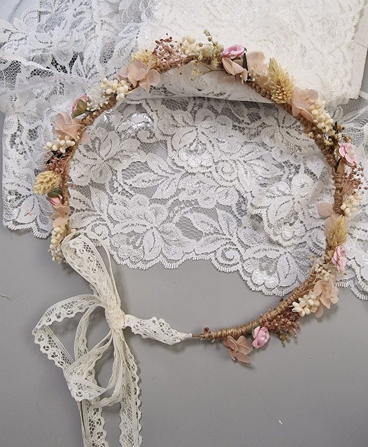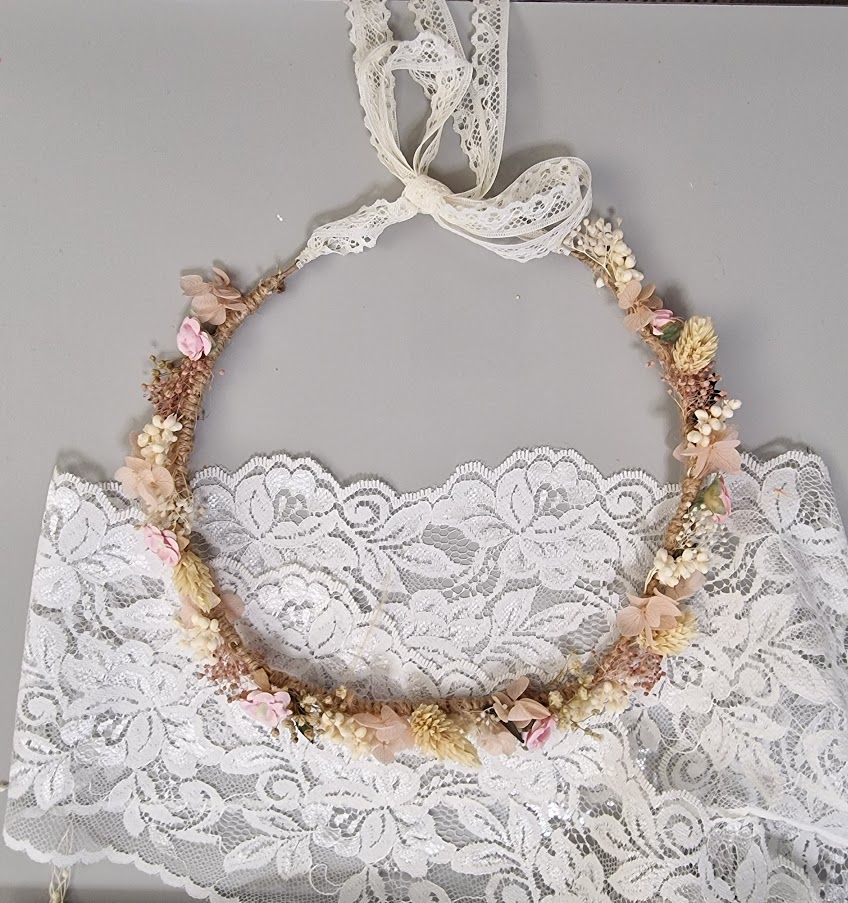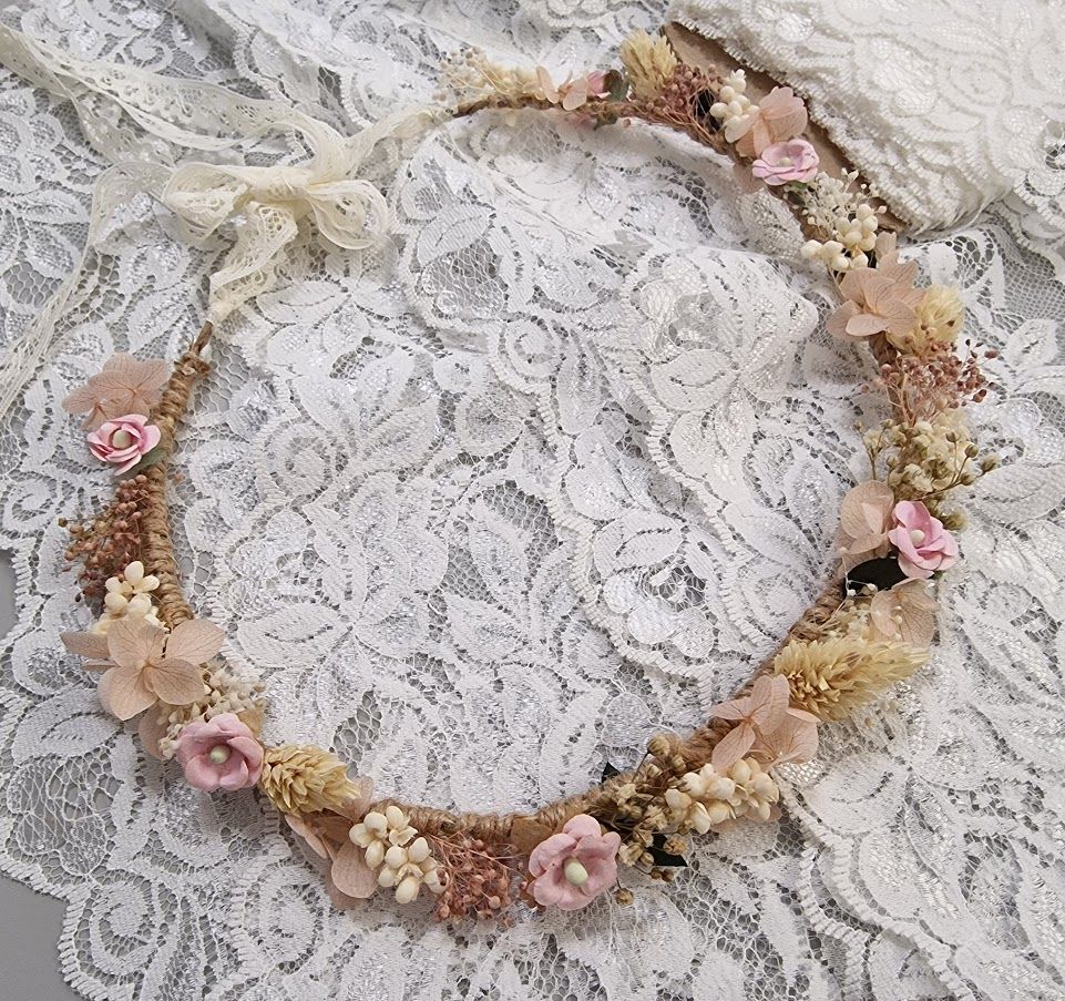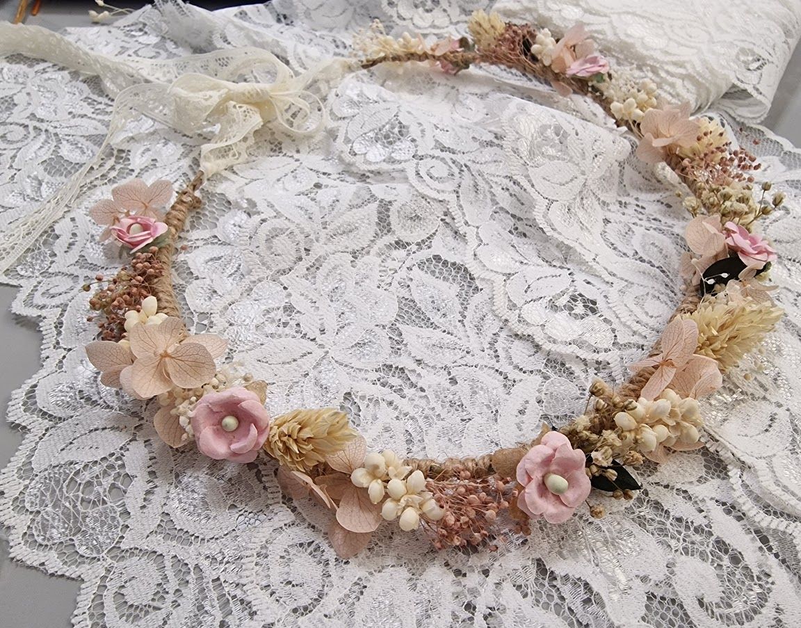 Coronita de flores secas y preservadas, el tocado de flores para niñas de arras, bautizo de la niña, cortejo nupcial, llevando las arras, acompañando a la novia o invitadas de bodas. Vamos perfecta para celebraciones que hará que su pelo luzca con especial protagonismo con esta preciosa coronita de flores.