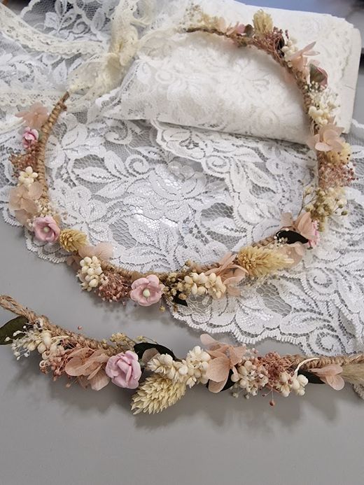 Coronita de flores secas y preservadas, el tocado de flores para niñas de arras, bautizo de la niña, cortejo nupcial, llevando las arras, acompañando a la novia o invitadas de bodas. Vamos perfecta para celebraciones que hará que su pelo luzca con especial protagonismo con esta preciosa coronita de flores.