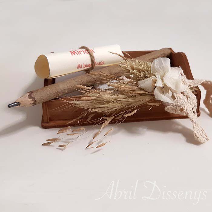 Más informaciónTaquillón con Bloc y Lápiz decorado con toques de flor Seca es un regalo ideal para invitados de una boda, bautizo o comunión. Es un recuerdo artesanal elaborado a mano.
