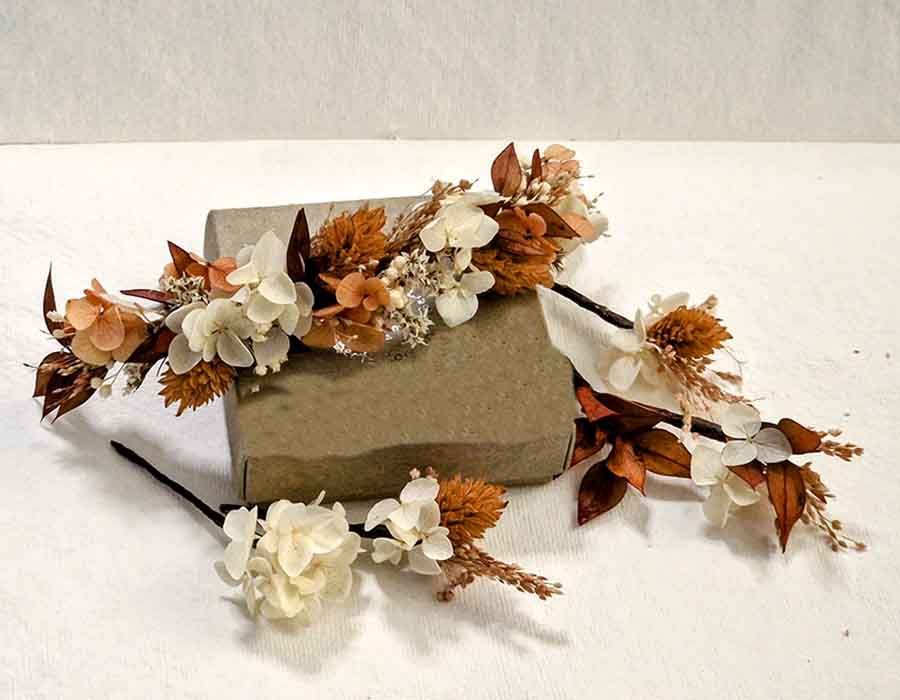 Nuestra experiencia de más de… años. Estamos a tu disposición en todo lo relacionado con los tan importantes pequeños detalles para tu boda. Adornos para el pelo y complementos de boda para el cortejo nupcial.Todo lo expuesto en nuestra web está hecho a mano con productos naturales y nacionales.