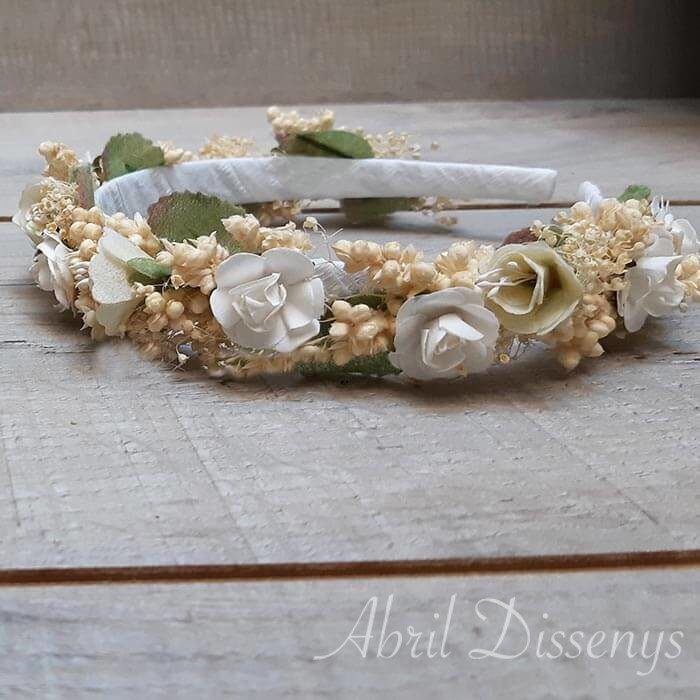 - Tamaña flor: Diadema completa con flor de oreja a oreja.