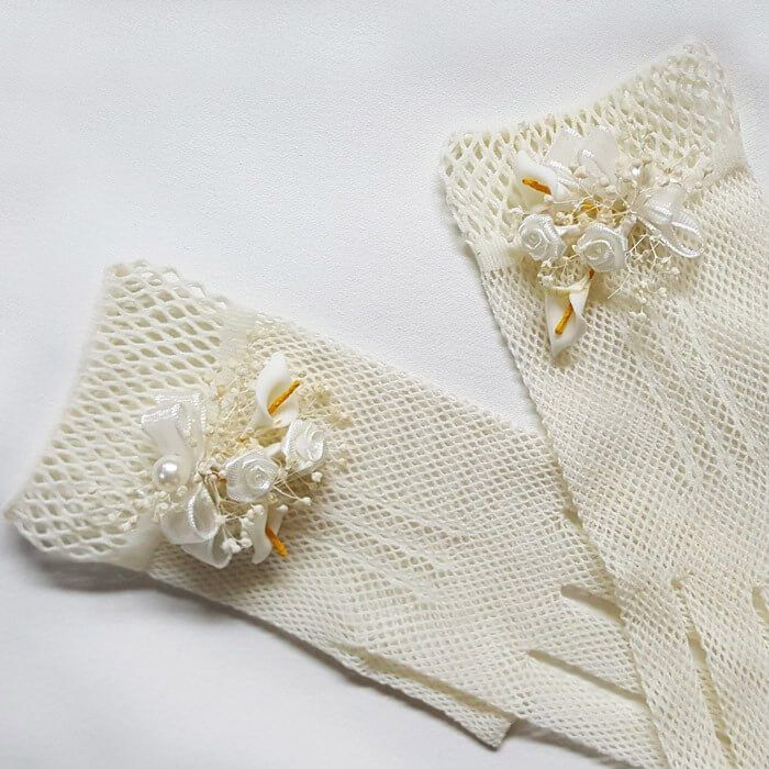 Guantes Comunión Elasticos Decorados con Flores