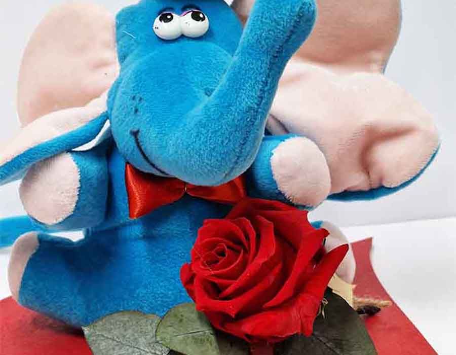 Rosas eternas preservadasLo enviamos a domicilio con un empaquetado que enamora junto con una bonita tarjeta. En el formulario de pedido puedes dejar una dedicatoria que nosotras transcribiremos a mano. kit del Enamorado con Elefante. Compuesto por: Un corazón de madera en color rojo de 25 x 20 cm Una rosa eterna, preservada, de tamaño grande, musgo y flor. Un elefante de peluche tamaño 15 x 6. Peluches hechos en España. Envoltorio con papel de craff, lazo de fantasía y tarjeta escrita a mano.