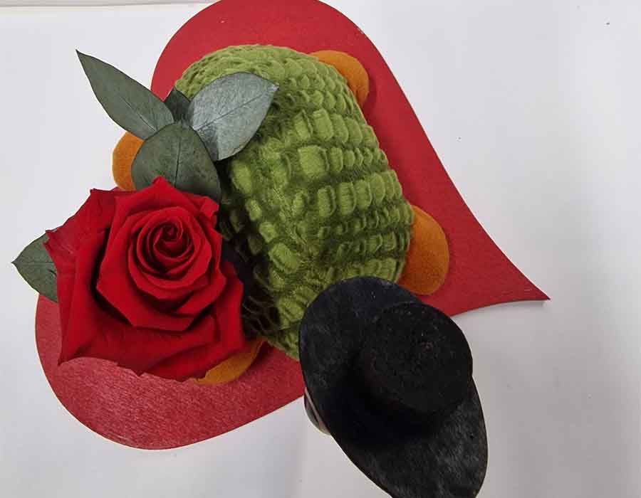 Rosas eternas preservadas. Lo enviamos a domicilio con un empaquetado que enamora junto con una bonita tarjeta. En el formulario de pedido puedes dejar una dedicatoria que nosotras transcribiremos a mano. Una rosa, una tortuga. Compuesto por: Un corazón de madera en color rojo de 25 x 20 cm. Una rosa eterna, preservada, de tamaño grande, musgo y flor. Una tortuga de peluche tamaño 15 x 6. Peluches hechos en España. Envoltorio con papel de craff, lazo de fantasía y tarjeta escrita a mano.