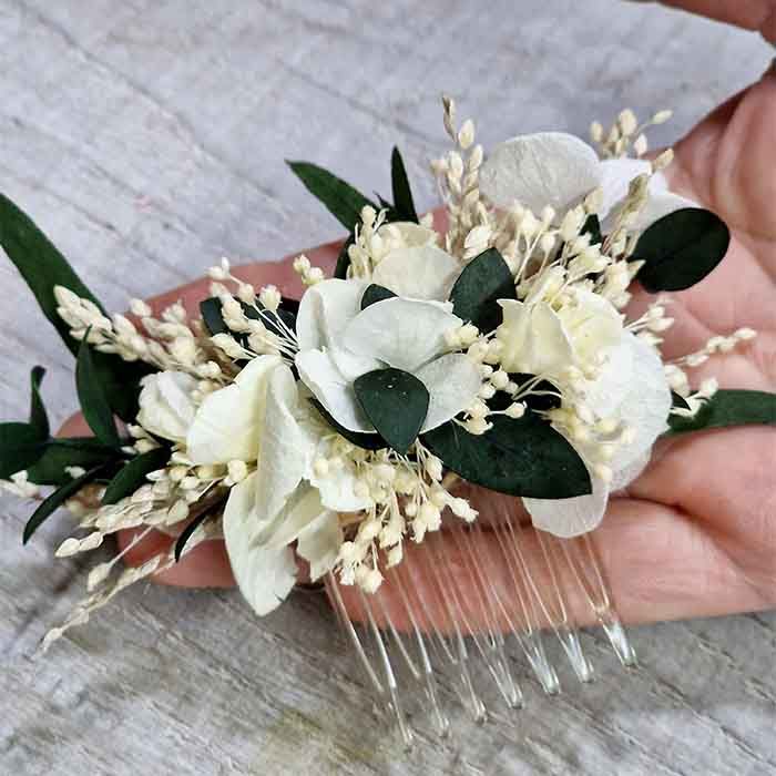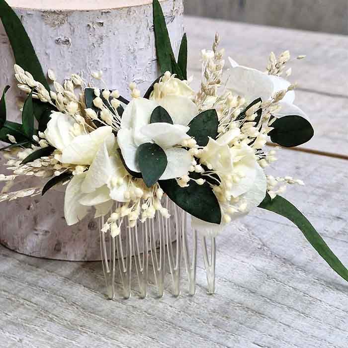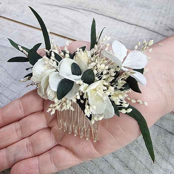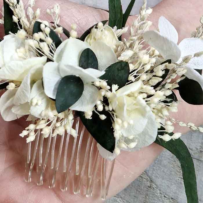 Peineta flores secas y preservadas