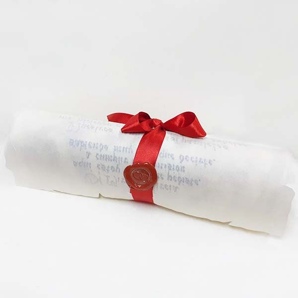 - El Pergamino Escrito a Mano se entrega según la foto, con lacres y cintas.
