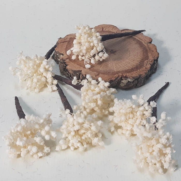Pinpelo Flor 5 unid Paniculata. La sencillez y la elegancia que aporta a los peinados de novias e invitadas, la flor de la paniculata preservada en color blanco o blanco roto. Pin
