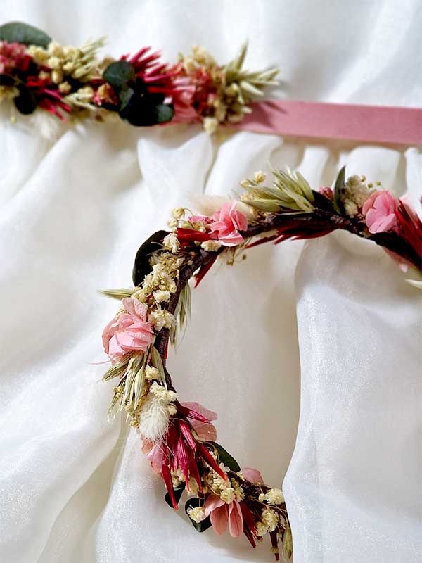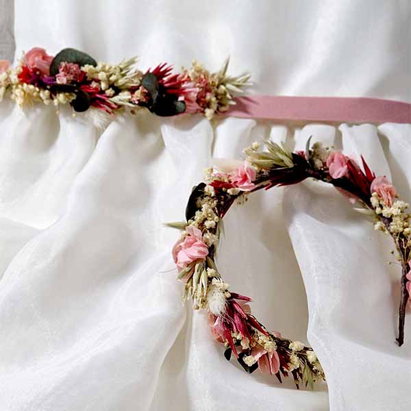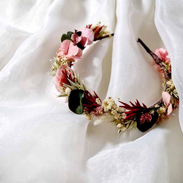 La diadema es, por excelencia, el complemento para el pelo más usado por las niñas en fiestas y celebraciones y preferible para las mamas por lo útil y fácil de colocar, además, son la tendencia 2023-24 diademas y los adornos de flores secas y preservadas para el pelo.