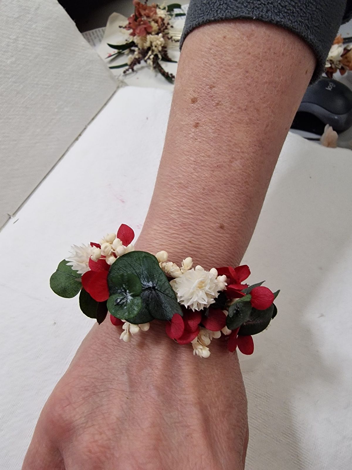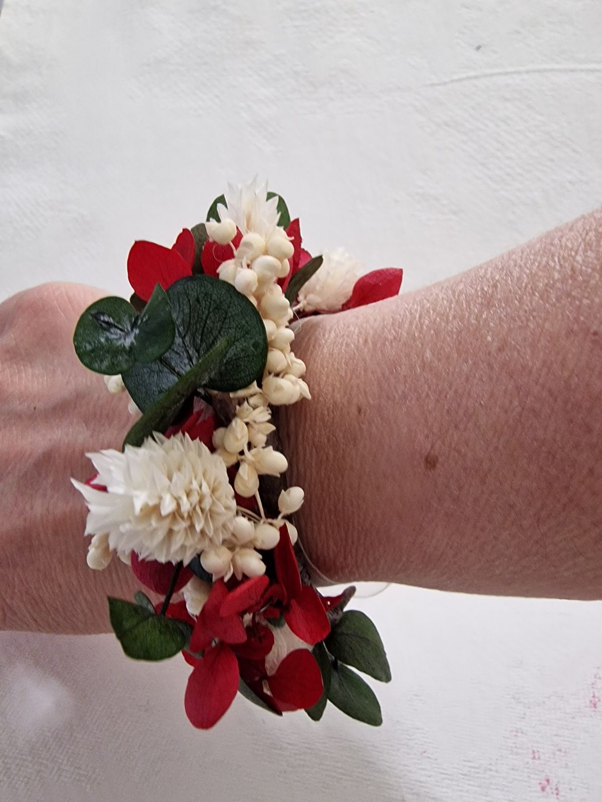 Pulsera Media Caña Color Rojo. Especia para damas de honor e invitadas especiales. Acta para todas las mujeres del evento, independientemente de la edad. Perfectas para las damas de honor o las invitadas. Con colores intensos o pastel decorados sobre la base de flores paniculata, hortensia, elaborada a mano y amor.