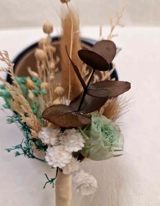 Ramillete de Flores Novio Aguamarina. Preciosas flores botonier para la solapa del novio, ya sabéis que, hay chicos que les gusta lucir un prendido de flores en la solapa espléndido y que se vea claro quién lo luce, pues para ellos hemos hecho este prendido de solapa tan precioso para el novio.Colección Aguamarina con todos los complementos de boda a conjunto Ramillete de Flores Novio Aguamarina Colección: Solapas novio tamaño mediano grande. Elaborado con: Bloom beige y verde turquesa, una rosa, siempreviva, gripsofila, lino, eucaliptus, jopito, cinta de algodón. Colores: Forma: Ramillete flores para el novio Tamaños: 16 cm Consultar otros colores. Cambiar un color no modifica el precio. Realizado: A mano al 100 % Nota: ¡Atención y Ventas WhatsApp!! Al 638551886. Disponemos de todos los colores para hacer los cambios a tu gusto.