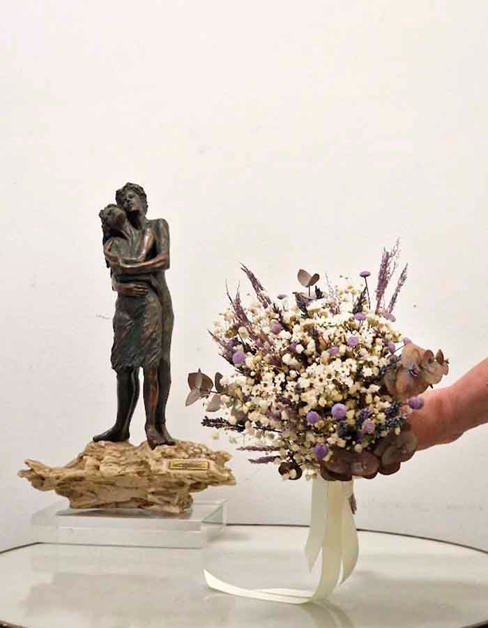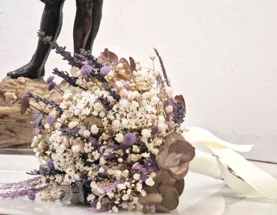ramo para la novia con flores naturales secas y preservadas.