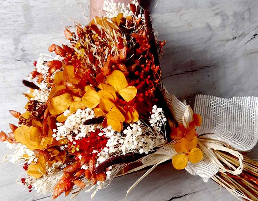 Ramo Silvestre Tardó Ramo Silvestre Tardó Ornamentación: Flores secas y preservadas. Hortensia, paniculada, Bloom en tres colores, avena, brisa máxima, pleum, lino Colores: Según foto. Es posible que al momento de hacer tu ramo pudiera faltar alguna flor, pero estate tranquila se mantendrán los colores con otra flor siempre mejorando. Tamaño Ramo de novia: 45 cm alto x 24 cm de diámetro. Aproximadamente. Los diseños son realizados en nuestro taller, el cual ponemos a tu disposición, para cambios o nuevos diseños personalizados.En Abril Dissenys, todo lo expuesto en nuestra web está hecho a mano con productos nacionales. No somos importadores, lo cual nos garantiza la calidad y originalidad del producto. Utilizamos el 90% de materiales naturales y reciclables.RECOMENDACIONES DE ABRIL DISSENYSPARA LA CONSERVACIÓN DE LAS FLORES Y MANTENERLAS DURANTE UN LARGO PERÍODO DE TIEMPO DECORANDO TU VIDA.Las flores naturales secas preservadas, no requieren cuidados mínimos.