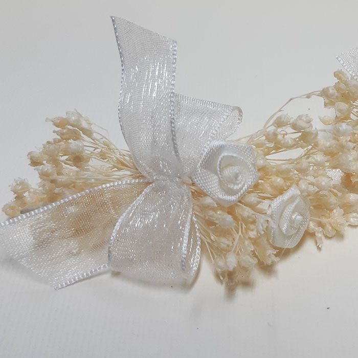 - Elaborado con: Flor de paniculata preservada y tela.