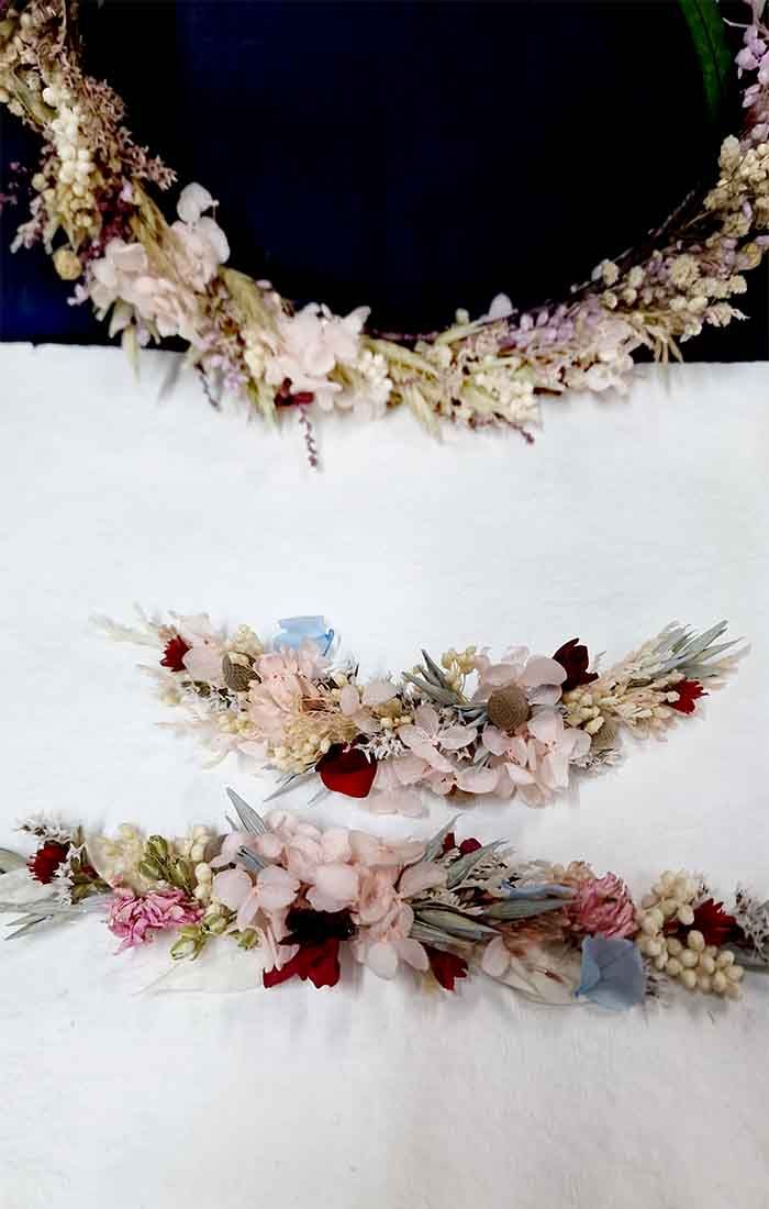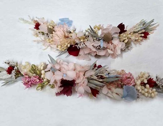 Set Flores para Pelo y Cintura. Las flores para la niña, se compone de, un pasador o una diadema con flores a un lado y el cinturón de 3 cm de ancho X 16 de largo, en una combinación perfecta de flores secas y preservadas, los adornos de flor para comunión, damitas de honor, niñas de arras. Colores neutros y suaves, cava, rosa nude, azul celeste. Disponemos de infinidad de texturas y colores para qué puedas escoger colores a conjunto con el fajín.Cintura floral y a escoger entre media corona o una diadema a escoger Colección Ceremonias Cinturón: De encaje de hilo, con flores Paniculata, siempreviva, hortensia, piel de chamadorea. Tamaño cinturón con flores de 3 cm de ancho X 16 de largo. Lazo de encaje o satén de 1,20 de largo. Tamaño de la diadema estándar: Forrada del mismo encaje y las flores en un lateral, flores 8 x 12 CM a conjunto Colores blanco o blanco roto. O el color que tú necesites. Duración: Puedes utilizarlo muchas veces. No exponerlas a la luz ni a la humedad. Atención y Ventas WhatsApp: 638551886.