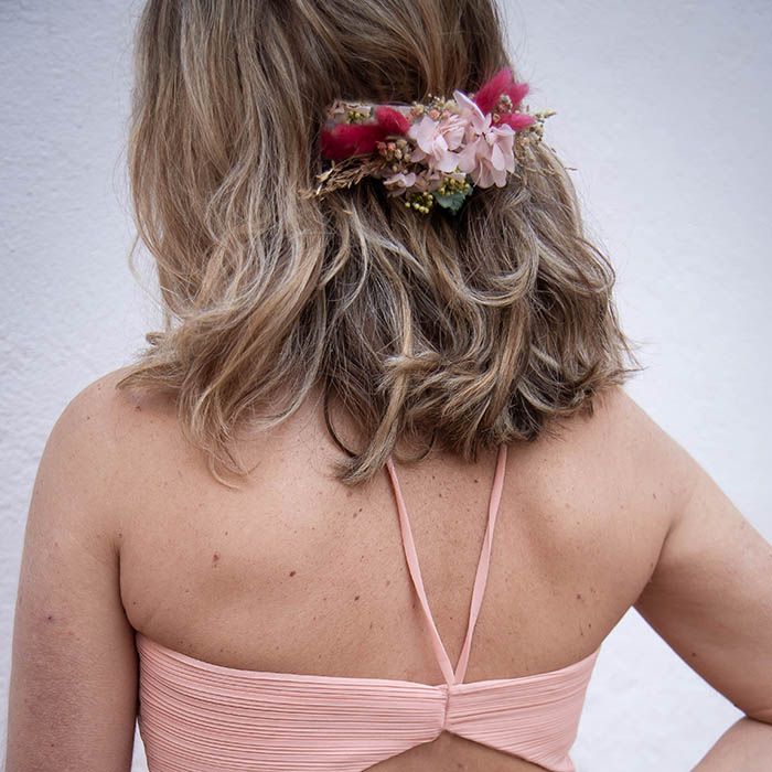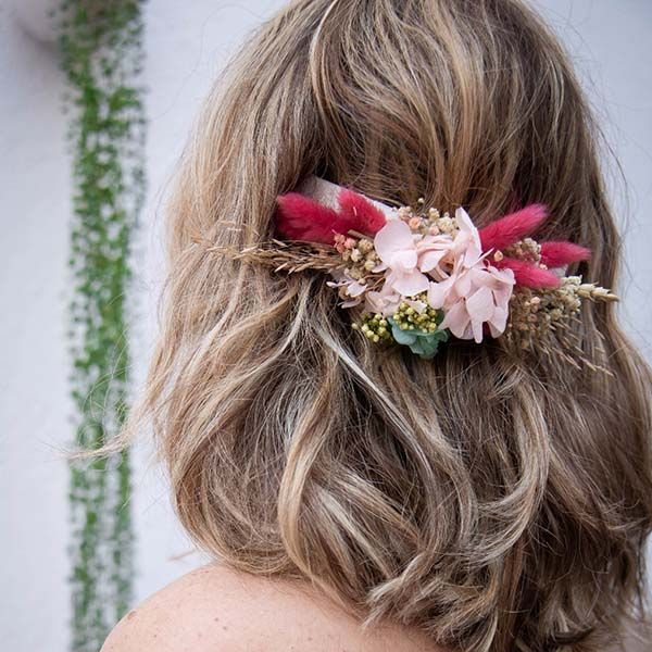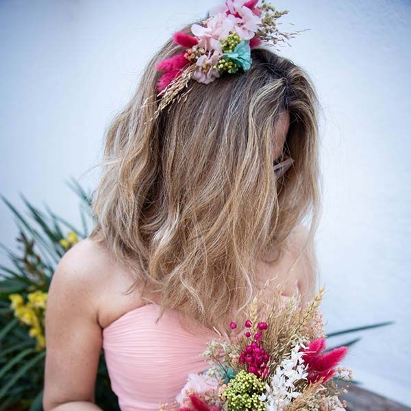 exuberante tocado de flores secas y preservadas y la dedicación lo hacen perfecto para lograr tu objetivo. Genial para realizar