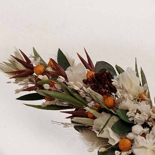 - Flores preservadas:Flor del lino, avena sativa, natural y marrón, siempreviva, hortensia, olivo, gripsofila, eucaliptus, bloom, brisa mínima.