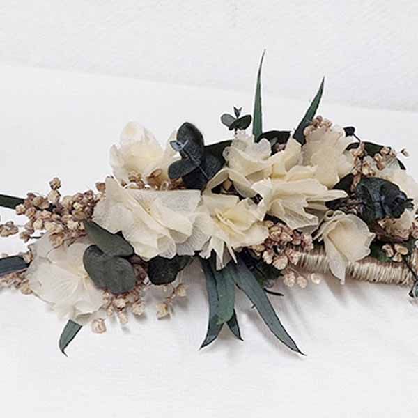 Tocado de flores naturales preservadas